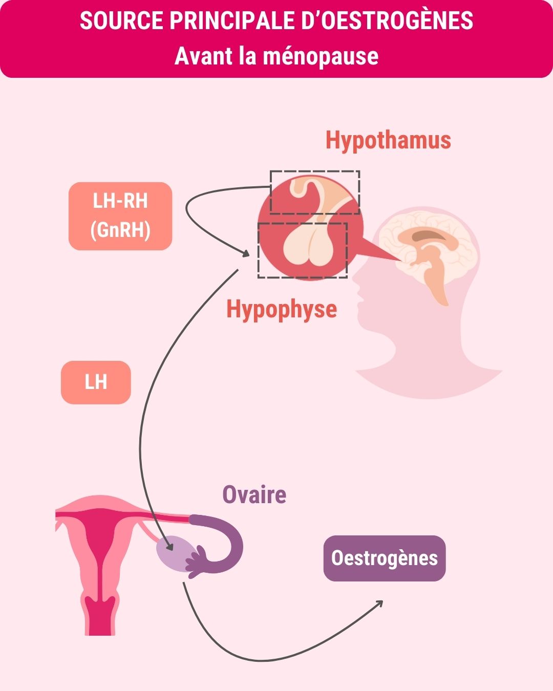 Ils sont synthétisés majoritairement par les ovaires. Leur sécrétion est très finement régulée. L’une des hormones impliquée dans ce contrôle est la LH-RH synthétisée par l’hypothalamus, une zone du cerveau.