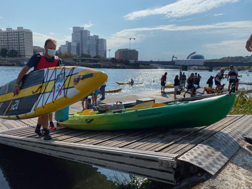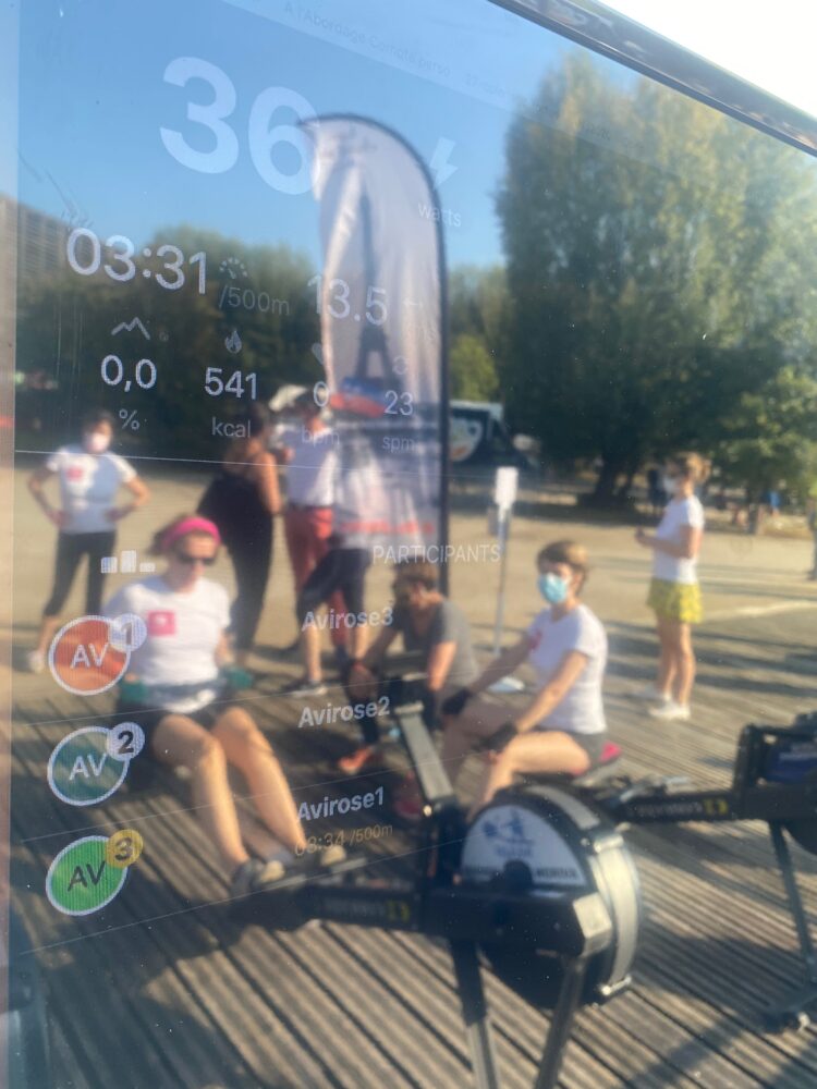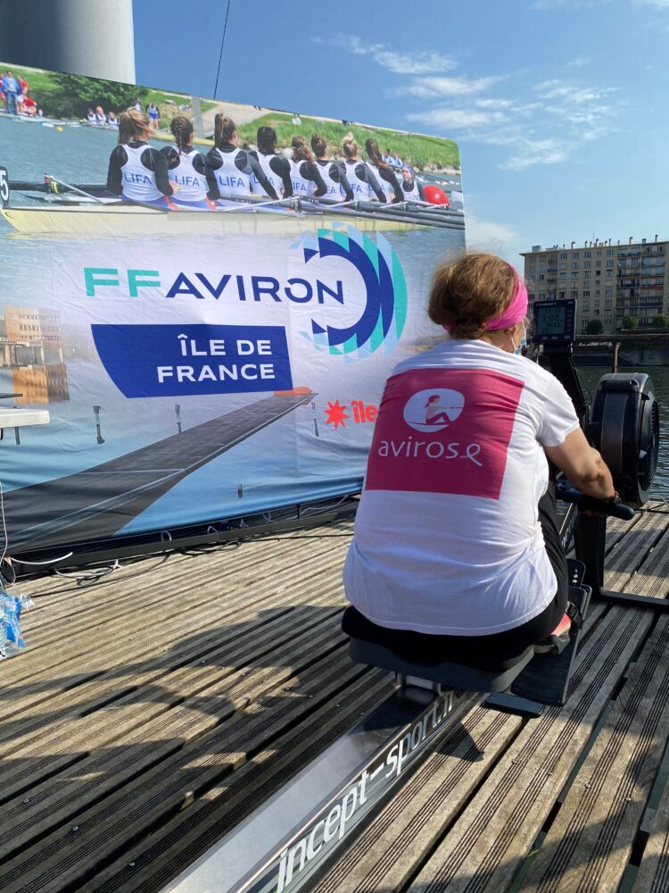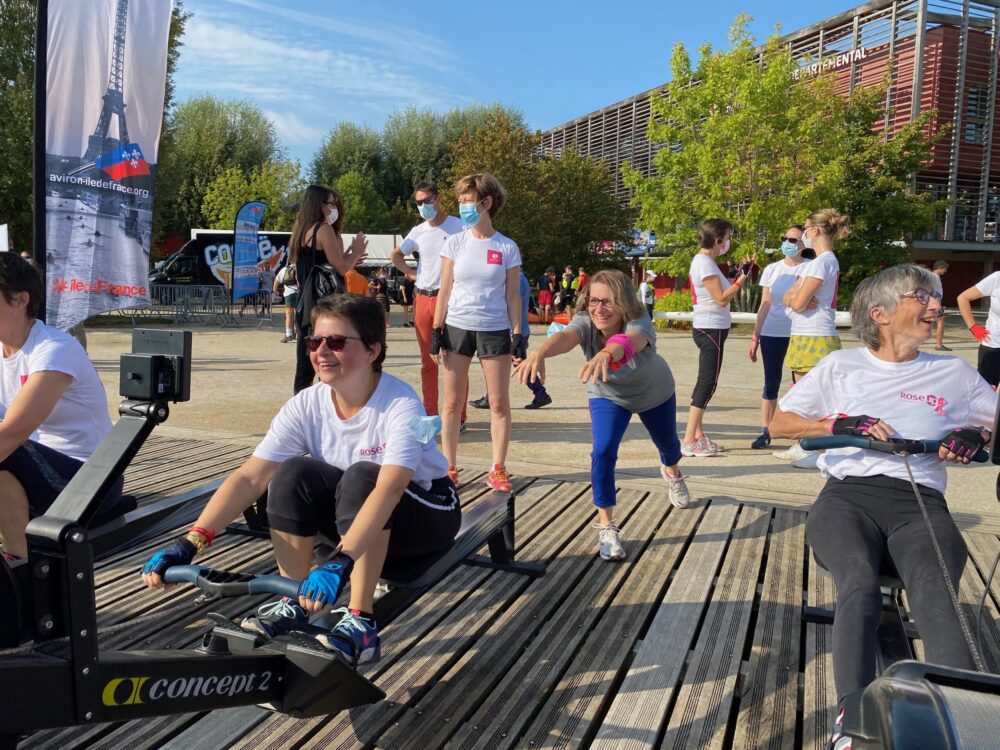 Cette « balade », il était prévu qu’elles la fassent sur l’eau, aux côtés des centaines de rameurs inscrits à cet événement exceptionnel pendant lequel la navigation est stoppée sur la Seine. Mais la pandémie est passée par là. La Maison Rose de Paris (MRP), où ces femmes s’entrainent habituellement sur des machines, a fermé. Adieu donc la traversée de Paris sur yolette, ces élégants bateaux dans lesquels peuvent prendre place 4 rameurs et un barreur. Qu’à cela ne tienne : elles effectueront le même parcours en sécurité sur la berge. Et pour que l’expérience soit la plus réaliste possible, la Fédération Française d’Aviron a tout prévu : les rameurs ont été installés face à la Seine, à côté du ponton où les autres équipes prennent le départ. « Et nous avons enregistré en juin des images de la traversée depuis l’arrière d’un bateau, explique Yvonig Foucaud, responsable pédagogique du programme Aviron Santé et coach à la MRP. Les images vont défiler en temps réel sur un écran, placé devant les participantes, pour qu’elles aient quand même l’impression de naviguer sur la Seine. »