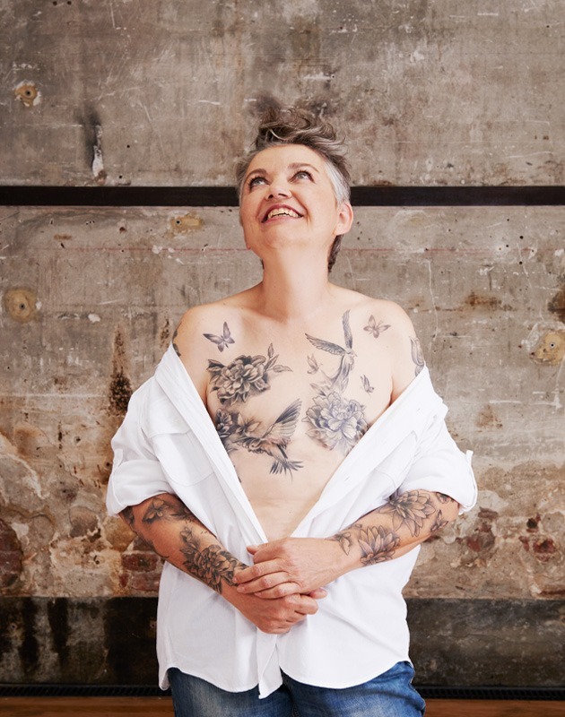 Exactement ce qu’a ressenti Sophie, 56 ans. Elle s’est fait tatouer la jambe juste avant l’opération de son cancer du sein et, deux ans plus tard, elle a fait recouvrir les cicatrices de son sein reconstruit et de son dos. « Avec le recul, j’ai réalisé que mes premiers tatouages avaient été des épreuves que je m’imposais avant de partir au combat, puis que ceux effectués après ont eu pour fonction de mettre un point final à la maladie. »