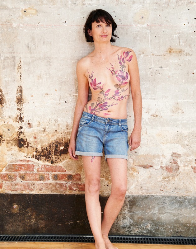 Rien d’étonnant du coup à ce que nos mannequins d’un jour parlent de leurs décorations comme d’un cadeau, d’un bijou ou d’une œuvre d’art qui rend leur vie plus belle. « Je voulais un grand tatouage qui détourne le regard des cicatrices tout en les masquant, mais je n’aurais jamais imaginé que cette branche de magnolia qui court de ma cuisse à mes seins m’apporterait autant, raconte en souriant Catherine, 41 ans. Je suis beaucoup plus coquette qu’avant, j’ai plus d’assurance. Ce tatouage signifie pour moi que je vis à fond. »
